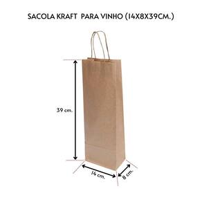 Sacola ecologicamente correta papel 100% kraft , muito bonito e resistente. Da segurança, beleza, charme no transporte do seu vinho. Valoriza o produto e a prestação de serviço da venda de sua loja.
