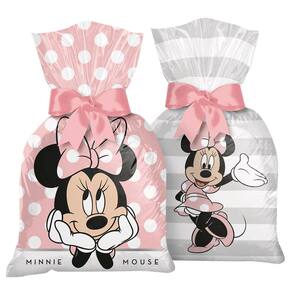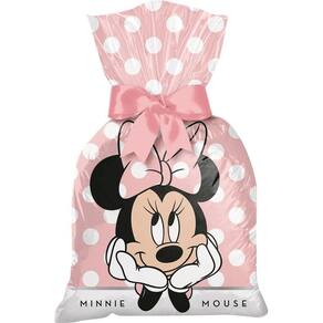 Pacote com 12 sacolas plásticas temáticas da Minnie Mouse Rosa.