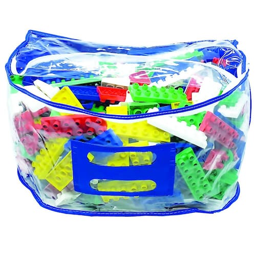 Conjunto confeccionado em plástico polipropileno atóxico de alto brilho, de cores vivas, contendo 500 peças com diversos encaixes e formatos. Acondicionado em sacola de PVC cristal com zíper e alça.