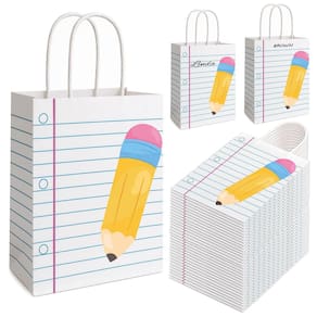 Sacos de papel para presente de agradecimento de professores com alças, linha de caderno, de volta às aulas, presentes para professores, presentes de final de ano, para formatura, aposentadoria, primeiro dia de escola, presentes de festa, sacos de embrulho