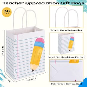 - Sacos de presente perfeitos para agradecimento ao professor: Estes sacos de papel podem ser presentes de final de ano para professores de formatura ou aposentadoria, presentes de volta às aulas, presentes de semana de agradecimento ao professor ou presentes de festa no primeiro dia de aula. Embalagem atraente e conveniente apresenta seus presentes de maneira limpa e profissional e expressa gratidão pelo professor