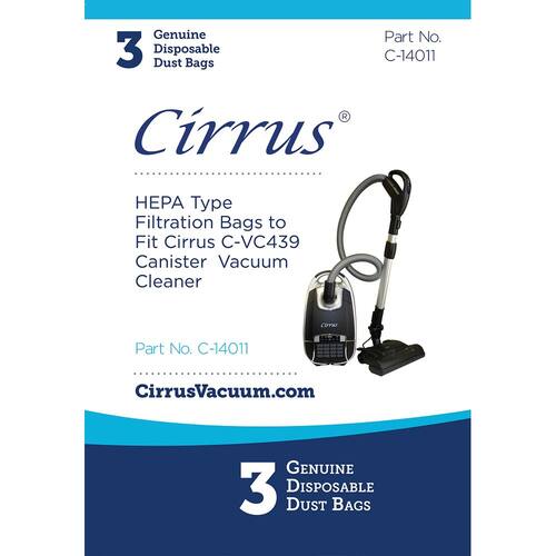 - TODOS OS MODELOS COMPATÍVEIS: Os sacos de vácuo Hepa descartáveis genuínos da Cirrus se encaixam no aspirador Cirrus VC439 Power Head Canister. Número de peça do fabricante: 61D03VC439 14011