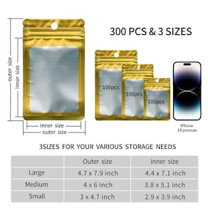 -?O pacote inclui?Você receberá 100 unidades de bolsas com zíper para janelas com 3 tamanhos diferentes, 300 unidades no total. Os três tamanhos são 3 x 4,7 polegadas, 4 x 6 polegadas e 4,7 x 7,9 polegadas, correspondendo à maioria das necessidades diárias de nossas vidas.