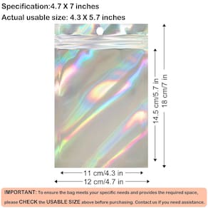 - Sacos holográficos premium – Nossos sacos ziplock de plástico holográficos são feitos de materiais CPP e PET seguros, inodoros, grossos e reutilizáveis, e também podem manter os itens limpos e seguros.
