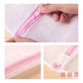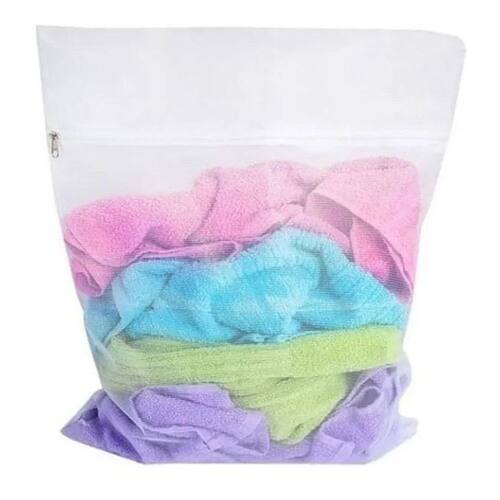 saco para roupas delicadas, facilmente adaptáveis a qualquer tipo de roupa e máquina. É utilizado para lavar qualquer tipo de roupas pequenas ou grandes, volumosas ou não como moletons, roupas intimas, roupas mais delicadas e roupas que soltam pelos, que com o saco ficam protegidas e também não prejudicam as demais roupas. Lave suas roupas íntimas separadas das demais, e evite que embolem e principalmente grude os fiapos das outras roupas pesadas nas mais delicadas. Ótimo para a lavagem de meias finas e lingeries. Material resistente. Feito de nylon. Zíper para fechamento. Protege as roupas delicadas na máquina de lavar. Evita que se formem bolinhas indesejáveis nas peças. Tamanho: 40x50 cm. Cor: branco com zíper rosa. Para todo brasil. Qualquer dúvida não hesite perguntar