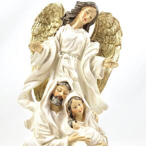 CONTEÚDO DA EMBALAGEM: 1 Escultura anjo com sagrada familia