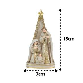 -01 Unidade Sagrada Família Poliresina Branco e Dourado 15cm