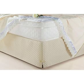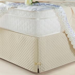 A saia prende abaixo do colchão na base da cama box.