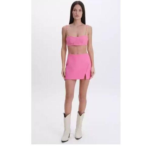 Confeccionada em poliester e com recortes estratégicos, a saia curta possui fendas e detalhes minimalistas, trazendo atemporalidade.