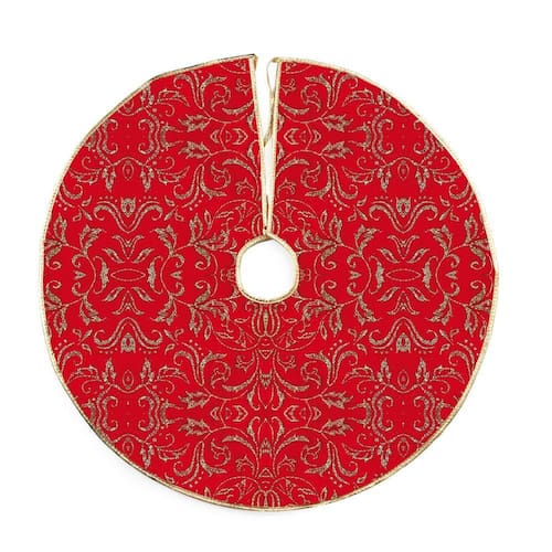 Saia De Árvore Folhas, Em Organza, Vermelho Com Ouro G
