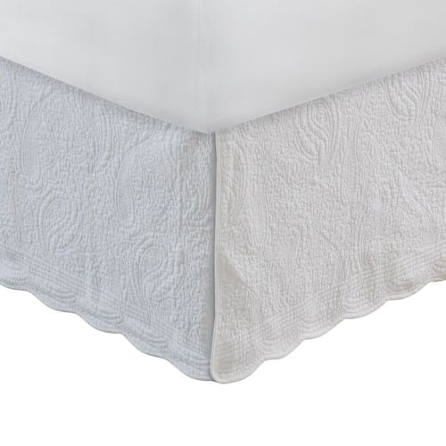 Saia de cama queen size acolchoada de algodão e poliéster Muka Paisley Ivory