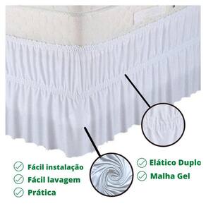 Saia para cama box malha queen A saia para cama box é uma peça de tecido Utilizado na base do móvel, aquela embaixo do colchão, evitando sujeira e, dependendo de seu comprimento, escondendo objetos guardados sob a cama. Para deixar o quarto elegante e bem organizado, invista em peças-chave que dão o toque muito especial e funcional, unindo o útil ao agradável. - saia box padrão de malha gel - marca: love4home - conteúdo da embalagem: 01 saia box - tamanho: queen - composição: tecido: 100% poliéster não precisa passar Comprimento x largura: 30 cm x 20 cm Atenção: foto ilustrativa -a tonalidade da cor real pode variar da tonalidade da imagem digital na tela do computador. Ficha técnica - Tamanho: Queen - Composição: Poliéster - Fonte do produto: Love4Home - Altura da cama box recomendada: 35 cm - Largura da cama box recomendada: 1,58 - Comprimento da cama box recomendado: 1,98 Ean: 7898665230978