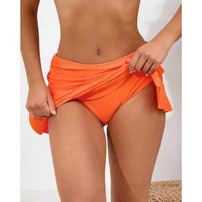 Saia de natação Halcurt feminina com babados, babados, controle de barriga, laranja M