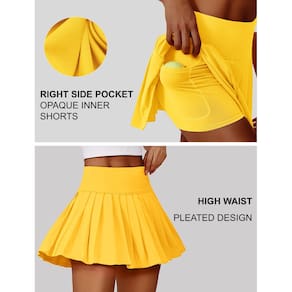 PINSPARK A saia plissada de tênis é elegante e funcional, perfeita tanto para desempenho na quadra quanto para uso casual. A saia tem um design plissado clássico, que permite facilidade de movimento e adiciona um toque de elegância. Inclui um bolso discreto, que é útil para guardar pequenos itens essenciais, como uma bola de tênis ou uma chave. O tecido incorpora proteção solar, ajudando a proteger sua pele dos raios UV prejudiciais durante brincadeiras ao ar livre. Por baixo da saia, há shorts embutidos que oferecem cobertura e conforto adicionais, garantindo que você possa se mover livremente e com confiança durante o jogo. No geral, este tipo de saia combina praticidade com um visual chique e esportivo. - Secagem rápida e proteção solar: Feita de materiais que não apenas absorvem a umidade e secam rapidamente, mas também oferecem proteção UV, mantendo você confortável e protegido dos raios solares. - Design plissado: apresenta um estilo plissado atemporal que aumenta a liberdade de movimento enquanto adiciona um toque de elegância ao seu traje atlético. - Cintura alta larga: projetada com uma cintura larga e alta que oferece um ajuste seguro e agradável, proporcionando controle de barriga e estilo. - Short interno com um bolso: equipado com shorts integrados que fornecem cobertura extra e conveniência, com um bolso para guardar bolas de tênis com segurança ou pequenos itens essenciais. - Para várias ocasiões: versátil o suficiente para tênis, outros esportes ou uso casual, tornando-a uma escolha funcional e elegante para diferentes configurações.