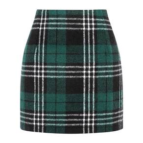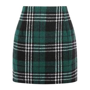 Minissaia xadrez feminina de lã, outono e inverno, saia lápis Bodycon de cintura alta (verde 01, S)