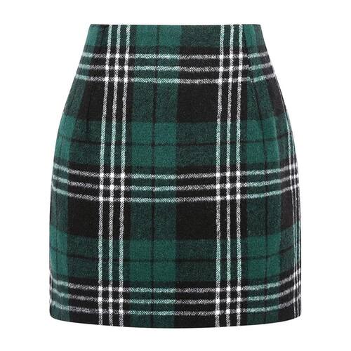 Minissaia xadrez feminina de lã, outono e inverno, saia lápis Bodycon de cintura alta (verde 01, GG)