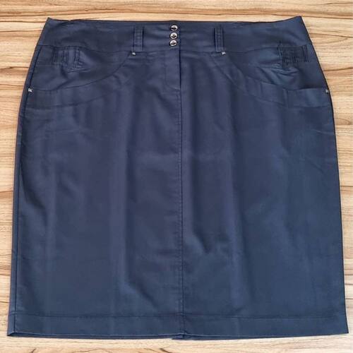 A Saia Feminina Morena Luz Plus Size Marinho combina conforto e sofisticação em uma peça que transita facilmente do trabalho aos momentos de lazer.