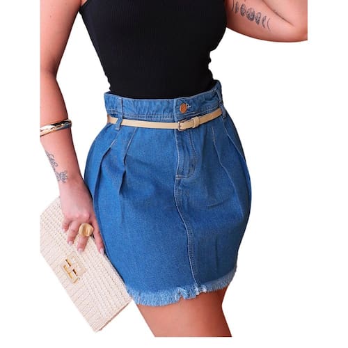 Saia jeans com pregas frontais e cinto marcando a cintura é uma escolha fashion inteligente, cheia de estilo que pode transformar qualquer look. As pregas frontais adicionam um toque de sofisticação e volume à saia, criando uma silhueta elegante. O cinto, por sua vez, ajuda a definir a cintura, proporcionando uma aparência mais feminina e estruturada. Modelo Veste tamanho 38