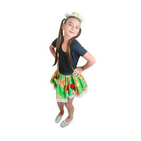 Tamanhos: 06 - 44 a 54cm (cintura) / 24cm (altura da saia) 08 - 46 a 56cm (cintura) / 26cm (altura da saia) 10 - 48 a 58cm (cintura) / 28cm (altura da saia) 12 - 50 a 60cm (cintura) / 30cm (altura da saia)