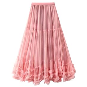 Eleve seu guarda-roupa com esta encantadora saia maxi em camadas, projetada para dar um toque de magia de conto de fadas à sua aparência diária. Feita de tule macio e fluido, esta saia de cintura alta apresenta babados delicados e camadas que criam uma silhueta etérea e sonhadora. Perfeita para mulheres que amam um estilo feminino e romântico, esta saia longa tutu oferece conforto e elegância. o design evasê favorece todos os tipos de corpo, enquanto a sobreposição de malha adiciona uma textura sutil e sofisticada, esteja você se vestindo para uma ocasião especial ou adicionando um toque extravagante Para suas roupas casuais, esta saia maxi de tule é indispensável e versátil. Combine-a com uma blusa justa para um look chique de cintura alta ou coloque-a sobre um vestido deslizante para obter um efeito mais dramático. Disponível em para se adequar ao seu estilo pessoal, esta saia de fada certamente se tornará a favorita de sua coleção. Abrace a beleza das saias de tule femininas e deixe sua deusa interior brilhar com esta deslumbrante, peça fluida.