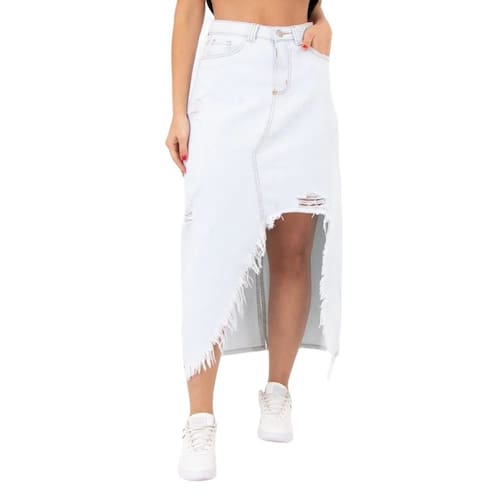 Saia confeccionada em jeans, comprimento mídi, fenda lateral e destroyed. Possui bolsos frontais e posteriores.A saia mídi no modo destroyed traz muita personalidade e poder pro look, pode ser combinada com as blusas.MEDIDAS: 36 – Cintura: 64cm, Quadril: 90cm, Comprimento: 84cm;38 – Cintura: 66cm, Quadril: 92cm, Comprimento: 88cm;40 – Cintura: 70cm, Quadril: 96cm, Comprimento: 90cm; 42 – Cintura: 74 cm, Quadril: 100cm, Comprimento: 90cm.