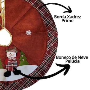 Finalize sua decoração natalina com elegância utilizando a saia para árvore de Natal modelo prime, confeccionada em tecido linho vinho com aplique de Boneco de neve em pelúcia e borda xadrez festiva, trazendo aconchego e sofisticação ao ambiente.