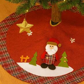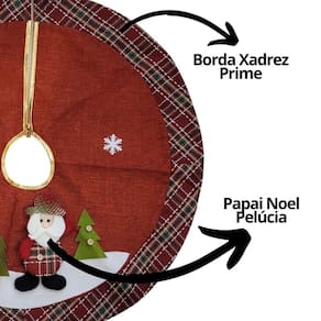 Finalize sua decoração natalina com elegância utilizando a saia para árvore de Natal modelo prime, confeccionada em tecido linho vinho com aplique de Papai Noel em pelúcia e borda xadrez festiva, trazendo aconchego e sofisticação ao ambiente.