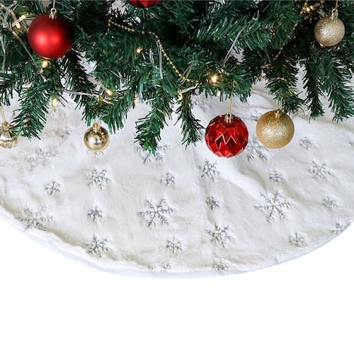 Com um design com diversos flocos de neve brilhantes, essa saia não só acrescenta estilo à decoração, mas também auxilia em esconder suportes e fios, proporcionando um visual limpo e organizado. Além disso, ela é feita com materiais de alta qualidade, o que a torna durável e resistente, projetada para ser utilizada ano após ano.