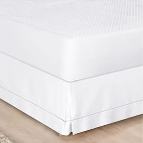 Saia para colchão cama box produzida em tecido Percal 180 Fios 80% algodão e 20% poliéster com acabamento em ponto palito. A saia ajuda a preservar a cama box contra possíveis danos, aumentando sua vida útil. Prática, fácil de colocar e disponível em tons neutros, ainda complementa a decoração com requinte e delicadeza.