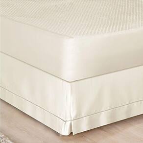 Saia para colchão cama box produzida em tecido Percal 180 Fios 80% algodão e 20% poliéster com acabamento em ponto palito. A saia ajuda a preservar a cama box contra possíveis danos, aumentando sua vida útil. Prática, fácil de colocar e disponível em tons neutros, ainda complementa a decoração com requinte e delicadeza.