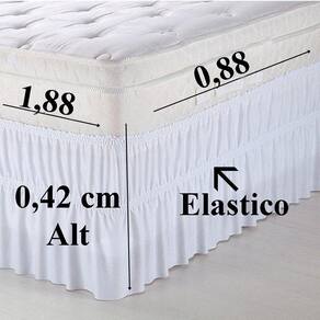 Saia Box Casal Solteiro, para a proteção de manchas em volta da base da cama,ela é de elástico, tecido 100% Poliéster, tecido de Qualidade. Dimensões: Comprimento, largura, altura 1,88m x 88cm x 42 cm .
