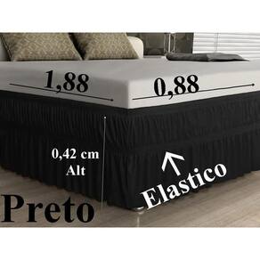 Saia box casal solteiro, para a proteção de manchas em volta da base da cama,ela é de elástico, tecido 100% poliéster, tecido de qualidade. Dimensões: comprimento, largura, altura 1,88m x 88cm x 42 cm .