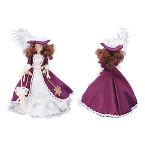 - Estilo vitoriano: a boneca de cerâmica feminina está vestindo uma saia roxa escura em estilo vitoriano e um chapéu roxo escuro.