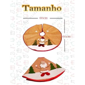 1. Qual o tamanho da saia? A saia possui 60cm de diâmetro, o que a torna perfeita para árvores de Natal de tamanho médio.