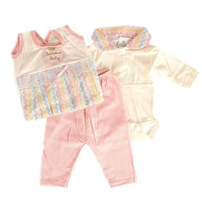 Conjunto de Roupa de Luxo Arco Íris com 4 peças, é uma excelente escolha para o seu bebê, com um acabamento de ótima qualidade e super lindo, ideal para a sua princesinha Nosso enxoval é totalmente diferente do que você já viu, contendo vestidinho, um body, uma calça e uma mantinha bordada, para deixar sua filha confortável e super linda