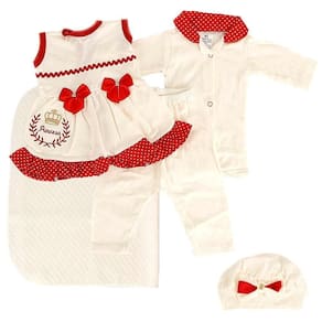 Conjunto de Roupa de Luxo Bege e Vermelho com 5 peças, é uma excelente escolha para o seu bebê, com um acabamento de ótima qualidade e super lindo, ideal para a sua princesinha Nosso enxoval é totalmente diferente do que você já viu, contendo uma touquinha de bichinho, um coletinho com touca, um body com bordado de girafinha e uma calça, para deixar sua filha confortável e super linda