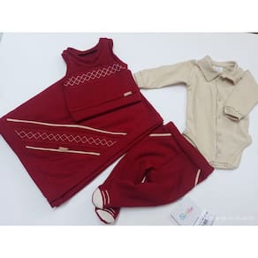 Saída Maternidade Bebê Menino 4Pçs Body Calça Paraiso 16907 - RN - Vinho