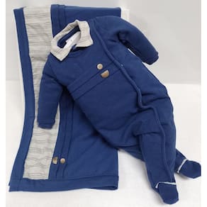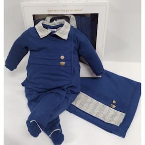 Saída Maternidade Luxo Bebê Menino Malha Paraiso Ref 16896 - RN - Azul Marinho