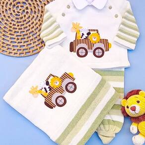 Conjunto Bebê em Tricô Casaco Salopete e Manta Acompanha1 Casaco1 Salopete1 Manta
