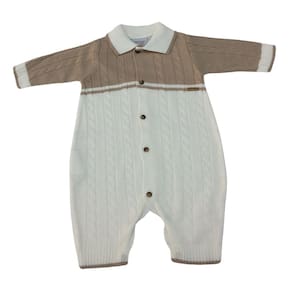 Kit Saida de maternidade maravilhoso, 2 peças: macacão + manta no tricot 100% acrílico, cor off white com areia. Um luxo. Noruega é tudo de bom!! Perfeito para deixar seu bebê ainda mais lindo. Coleção inspirada em cores e materiais do Brasil e Europa.Tudo pensado e desenvolvido com muito carinho.