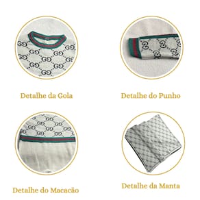 O conjunto traz o toque aconchegante do tricot para vestir seu amor com muito estilo. A manta e o macacão são peças versáteis, Perfeito para presentear!