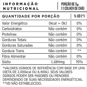 Sem Glúten 0% glutamato Sem conservantes Sem corantes Ingredientes 100% naturais Pote Com Tampa Flip-Top Duas Aberturas