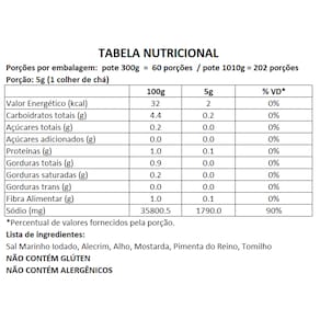 Sal Marinho Iodado, Alecrim, Alho, Mostarda, Pimenta do Reino, Tomilho