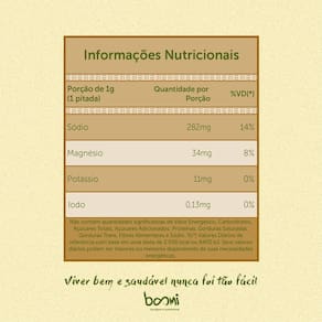 Ingredientes: sal marinho integral. Não contém glúten.