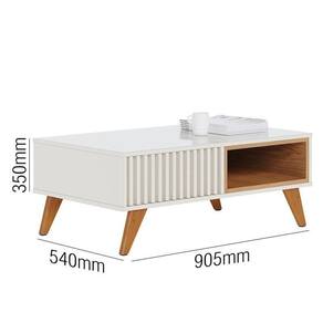 Mesa de Centro Jeri Ripada - PR Móveis - Estrutura em MDF e MDP - Pintura UV - Nichos internos em cada lado - Detalhe ripado na lateral - Pode ser usada de ambos os lados - Pés em madeira maciça - Design estilo retrô e simétrico - Suporta até 8 Kg