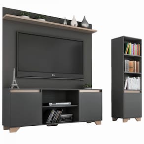 O(a) Sala de Estar Completa para TV Até 55 Polegadas Benevello 2039 Grafite/Siena - Quiditá Móveis é produzido em MDP na escala de brilho Fosco, e possui um grau de dificuldade de montagem: Médio.