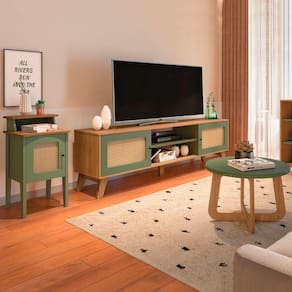 O(a) Rack para TV Até 75 Polegadas Charlotte 2 Portas Carvalho/Menta - Artely Móveis é produzido em MDP na escala de brilho Fosco, e possui um grau de dificuldade de montagem: Médio.
