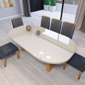 A Sala de Jantar Karen é a escolha perfeita para quem busca sofisticação e qualidade. Com mesa de 1,96m de comprimento, 90cm de largura e 80cm de altura, é ideal para reunir família e amigos com conforto. Fabricada 100% em MDF, possui tampo oval com vidro de 4mm, garantindo resistência e elegância. As bordas em PVC proporcionam um acabamento refinado e maior durabilidade. Acompanha 6 cadeiras robustas e confortáveis, trazendo charme e funcionalidade ao ambiente. Produto direto da fábrica, garantindo excelência e qualidade.