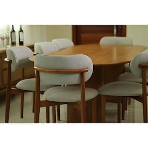 Sala de Jantar 8 Cadeiras Lais - Requinte Salas   Uma sala de jantar moderna e elegante, perfeita para reunir conforto e estilo. A protagonista do ambiente é a Mesa Alexandria, com seu design contemporâneo, base moderna e tampo orgânico que está em alta, permitindo personalizar o espaço de acordo com a decoração. Complementando a mesa, as Cadeiras Lais trazem um toque de sofisticação e conforto. Com encosto anatômico totalmente estofado e assento de espuma D-26, elas garantem máximo bem-estar. A estrutura em madeira maciça tauari reforça sua durabilidade, enquanto as opções de tecido permitem criar combinações únicas e harmoniosas. O ambiente é uma combinação perfeita de design funcional e aconchego, ideal para momentos especiais ao redor da mesa.   Faz Parte do Anúncio.: 1 mesa de Jantar Tampo Orgânico Alexandria  8 Cadeiras Madeira Maciça Lais     Particularidades da Mesa de Jantar.: Características:- Estrutura em MDF laminado;- Base diferenciada;- Tampo orgânico;- Madeira ecologicamente correta;Dimensões da Mesa:Altura: 79 centímetrosLargura: -  2,40m de larguraProfundidade: - 1,10m de profundidade       Particularidades da Cadeira Lais.: Características:- Estrutura em Madeira Maciça Tauari;- Encosto e assento estofados;- Encosto anatômico;- Espuma com Densidade D-26;- Feltro de proteção nos pés;- Design moderno, sofisticado e diferenciado;- Baseado em conceitos sustentáveis;- Madeira altamente resistente;Dimensões da Cadeira:Altura: 85 CentímetrosLargura: 50 CentímetrosProfundidade: 50 Centímetros     Informaçoes Importantes.:   -Produtos podem apresentar diferenças de tonalidades entre a foto na tela e o produto real, devido a calibração de cor de tela.-Limpar com flanela ou pano macio. Não utilizar álcool. Não utilizar produtos abrasivos ou corrosivos.-Nós prezamos pela qualidade da entrega em primeiro lugar, trabalhamos com transportadoras altamente selecionadas e os melhores materiais de embalagem.-A montagem é de total responsabilidade do comprador. Antes de comprar, verifique o espaço disponível para a montagem.-Certifique-se de que o produto caiba em elevadores e vãos de escadas, não fazemos içamentos. Quaisquer despesas deste tipo ficam a cargo do cliente-Garantia de 3 meses contra defeitos de fabricação.