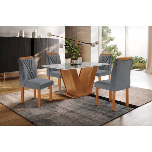 Sala de Jantar 4 Cadeiras c Vidro 1,20x0,80m - Paris - Sky Móveis